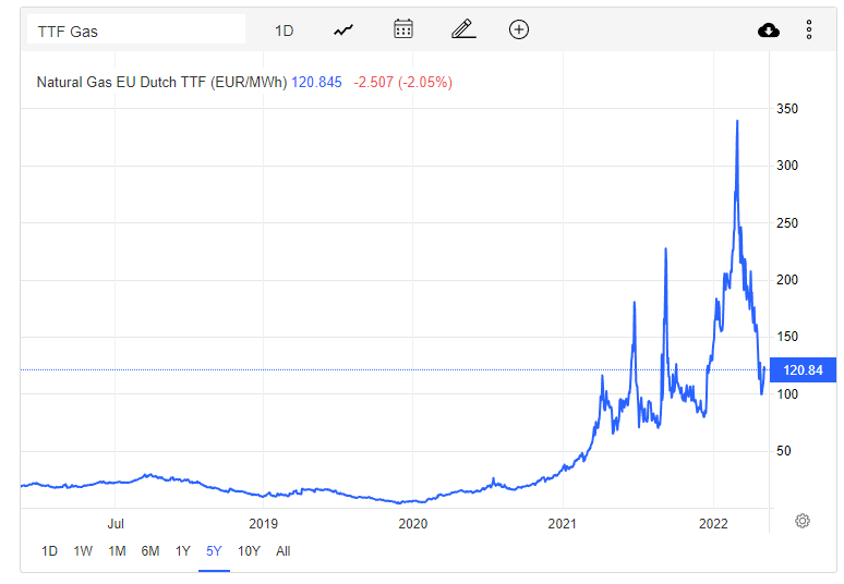一噸單氰胺(50%含量)需要1.65噸石灰氮 300度電,1噸石灰氮需要0.8噸電石,1噸電石需要3000度電,因此一噸單氰胺的生產(chǎn)成本會嚴(yán)重受到電石成本的影響。截至發(fā)稿時(shí),與歐洲天然氣批發(fā)價(jià)格TTF掛鉤的天然氣期貨價(jià)格約為每兆瓦時(shí)120歐元,接近10月觸及的五個(gè)月低點(diǎn),不到夏季峰值339歐元的三分之一,但仍然是2021年 10月份每兆瓦時(shí)65美元的兩倍。就以120歐元一兆瓦時(shí)來計(jì)算,相當(dāng)于8.64元RMB/立方米(中國工業(yè)用氣2塊多),天然氣熱值為8400Cal/m3,按照85%燃燒效率計(jì)算,每立方米天然氣大概可以發(fā)電3.321度,一度電天然氣成本2.6元(中國工業(yè)用電0.5元/kwh)。一噸電石,歐洲生產(chǎn)僅電力成本要比中國高出6300元,一噸單氰胺比中國的生產(chǎn)成本也要高出7000元以上。這對于一款售價(jià)僅為3800USD/噸(50%水溶液)的品種來說,成本增加40%對其穩(wěn)定生產(chǎn)和供應(yīng)是非常不利的。也許該產(chǎn)品在德國有減產(chǎn)甚至停產(chǎn)風(fēng)險(xiǎn)。