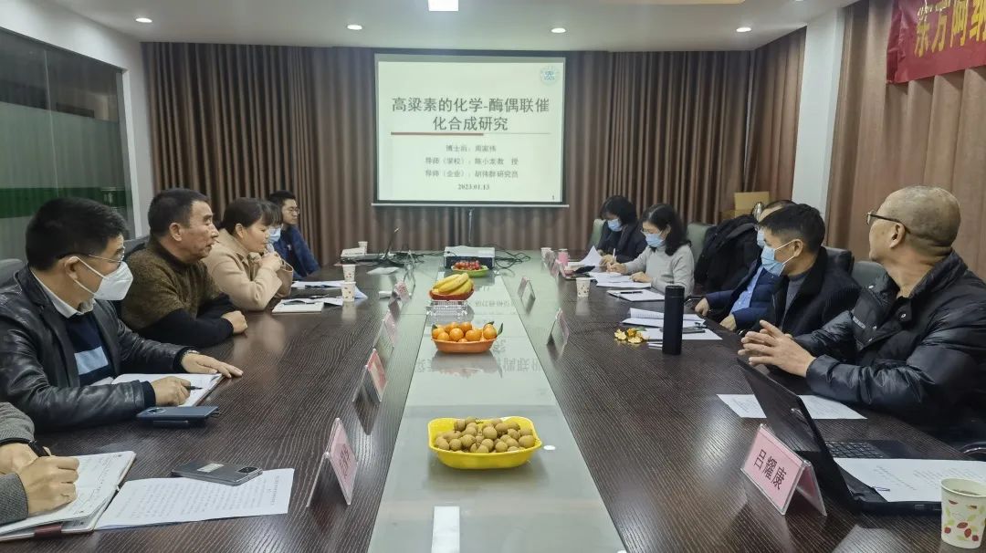 會上,周家偉博士就其研究的《高粱素的化學(xué)-酶偶聯(lián)催化合成研究》課題進行匯報。與會專家對課題的研究手段、可行性、技術(shù)路徑以及目前取得的成果等方面進行了論證,認為該課題緊貼社會和企業(yè)需求,具有前沿性理論意義和應(yīng)用價值,并提出了建設(shè)性的意見和建議。經(jīng)綜合評議,一致通過了周博士的報告。